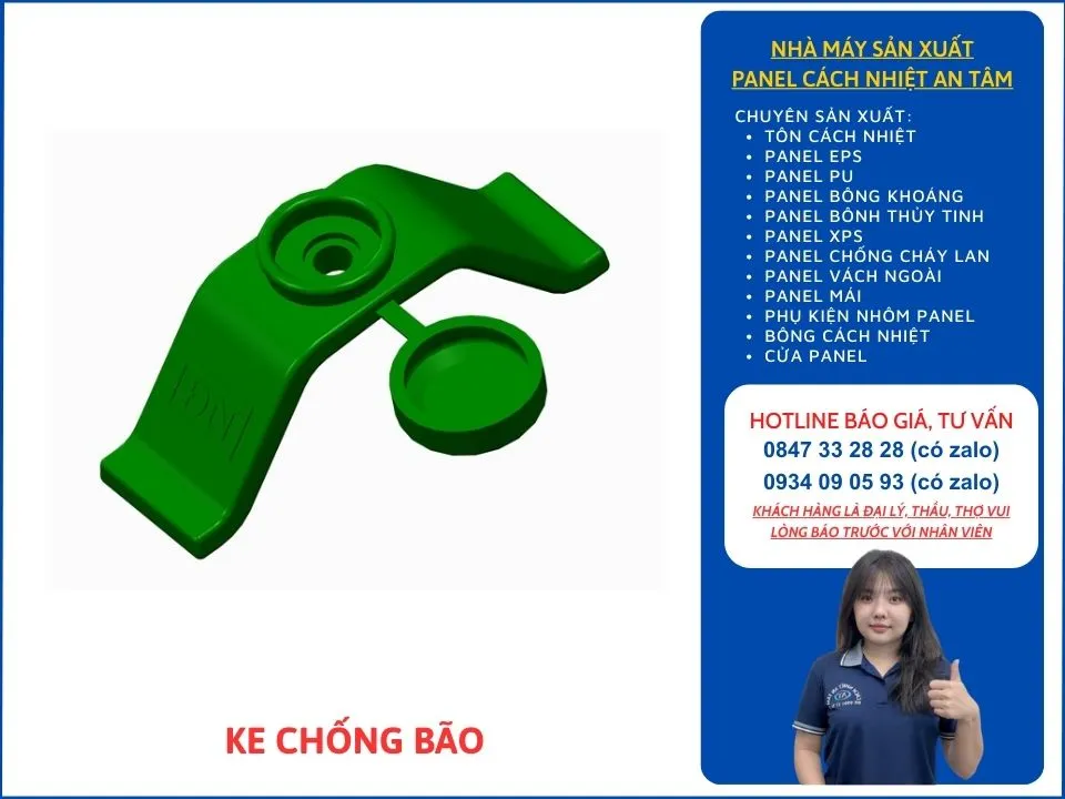 Panel Cách Nhiệt An Tâm là đơn vị đi đầu trong lĩnh vực cung cấp vật liệu xây dựng. Công ty chuyên phân phối và thi công các sản phẩm cách nhiệt, cách âm, chống nóng. Quý khách có nhu cầu đặt mua ke chống bão cho mái tôn vui lòng liên hệ trực tiếp để được tư vấn và báo giá chi tiết.